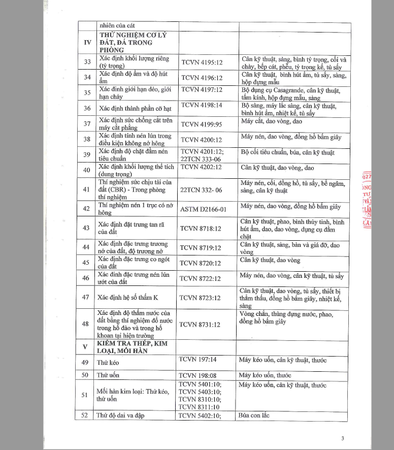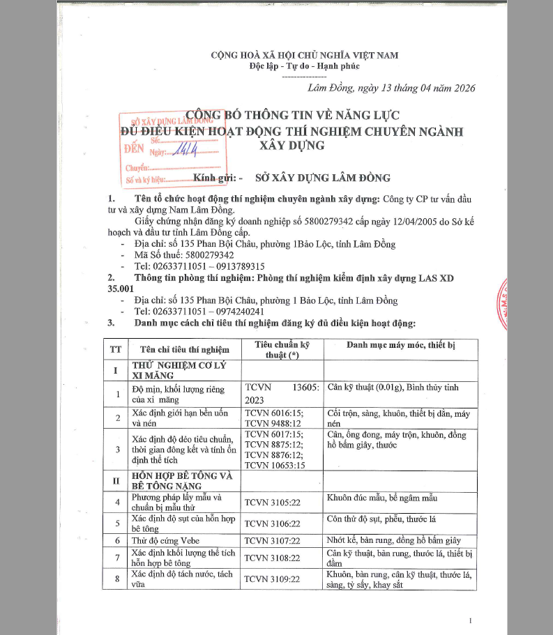 Công Bố Thông Tin Năng Lực Đủ Điều Kiện Hoạt Động Thí Nghiệm Chuyên Ngành Xây Dựng